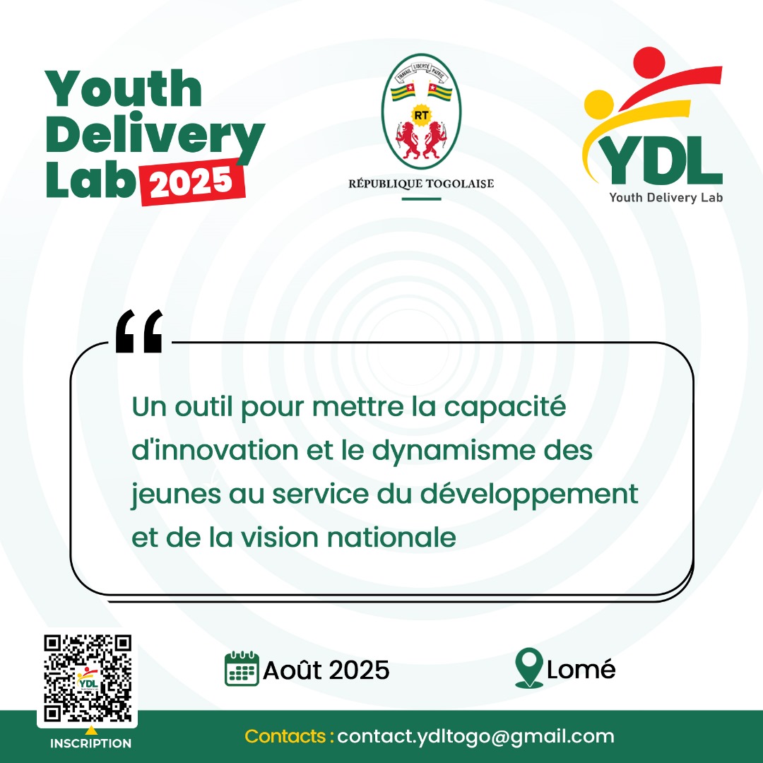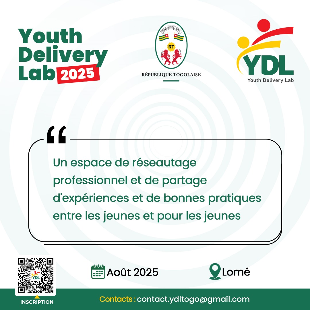 Nous sommes ravis de vous annoncer la tenue de la deuxième édition de la Table ronde de la jeunesse togolaise dénommée Youth Delivery Lab. Cette table ronde vise à réunir des jeunes togolais vivants au pays ou à l'extérieur autour d'un dialogue participatif et citoyen en vue de proposer des pistes de solutions sur des thématiques d’intérêts et des enjeux d'actualité.
